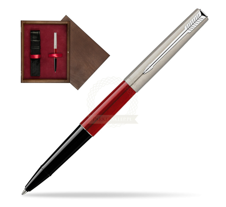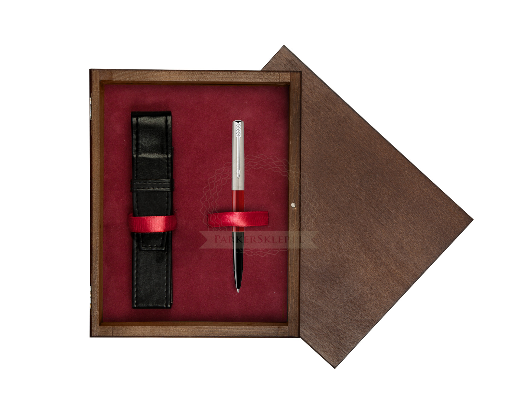 Pióro kulkowe Parker Jotter Red CT w pudełku drewnianym Czerń Single Bordo