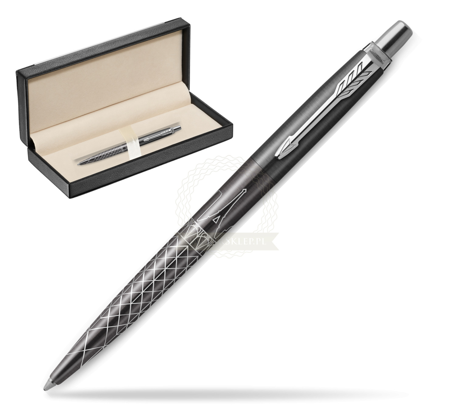 Starannie naniesiona laserem panorama i wykończenie lakierem w kolorze szarym stanowią doskonały przykład kunsztu rzemieślniczego Parker, który zapewnia Jotter wyrafinowanie na miarę luksusowych długopisów.