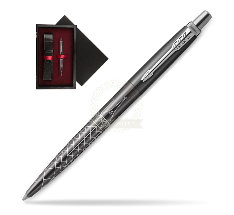 Starannie naniesiona laserem panorama i wykończenie lakierem w kolorze szarym stanowią doskonały przykład kunsztu rzemieślniczego Parker, który zapewnia Jotter wyrafinowanie na miarę luksusowych długopisów.