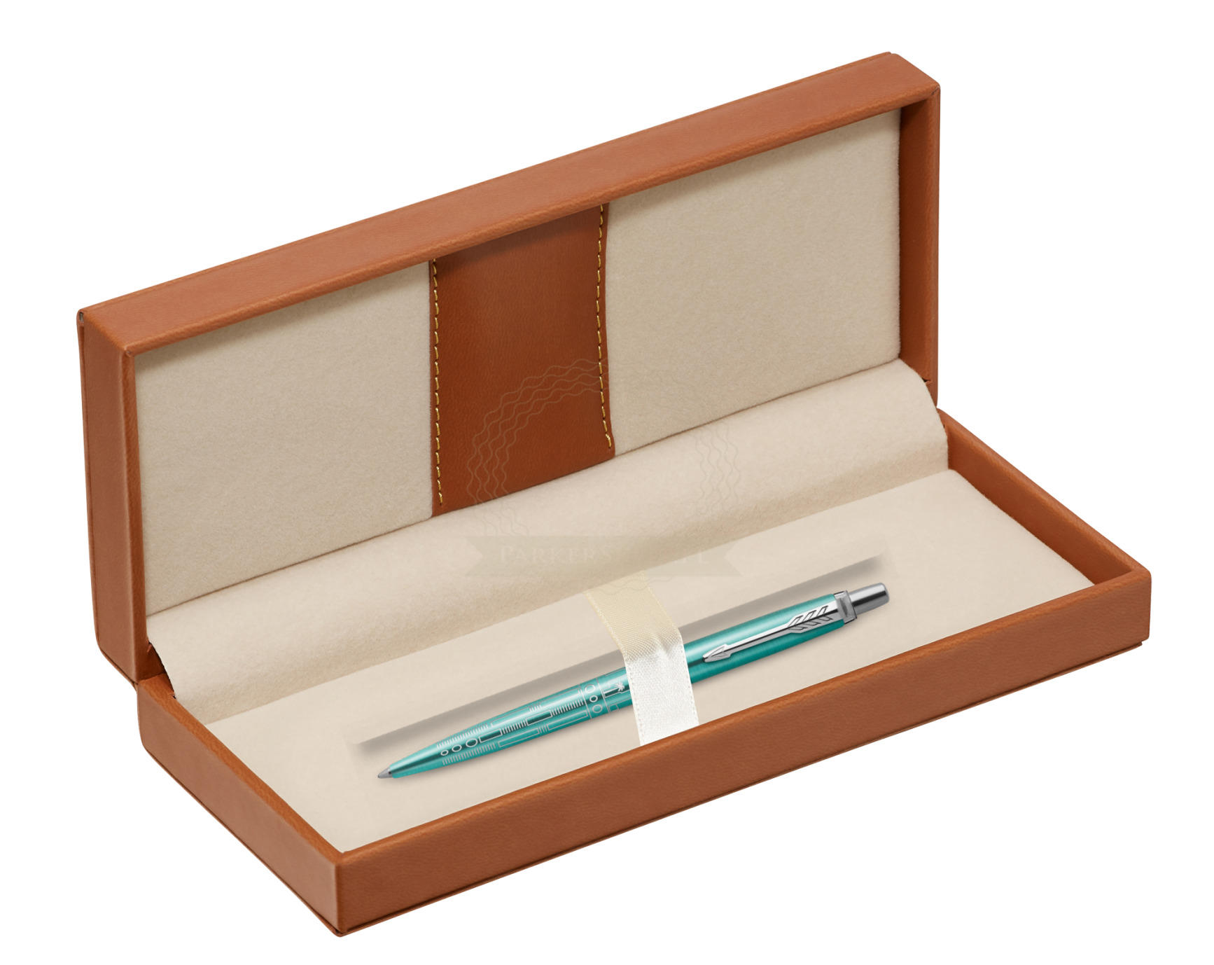 Jotter w edycji specjalnej kolekcji „Global Icons” to rezultat ostatniej, wielkiej wyprawy po metropoliach świata, która tym razem zawitała do czterech fascynujących destynacji. Za inspirację dla Jotter w edycji specjalnej Miami posłużyły wyraziste budynki w stylu Art Deco, śmiałe kształty geometryczne i kolorowy, figlarny styl Miami. Kultowe fasady Ocean Drive, charakterystyczne budowle i kapryśne detale nawiązujące do zabawnego, żywego ducha Miami zostały przeniesione na korpus długopisu. To wyjątkowe wzornictwo zostało starannie odzwierciedlone laserem na tym wspaniałym artykule piśmienniczym, stanowiąc dowód kunsztu rzemieślniczego Parker. Jego dopełnienie stanowią gładkie pismo i charakterystyczne kliknięcie długopisu Jotter wykończonego lakierem w kolorze turkusowym. Jotter w edycji specjalnej Miami to doskonały towarzysz dla wszystkich pisarzy spragnionych podróży.