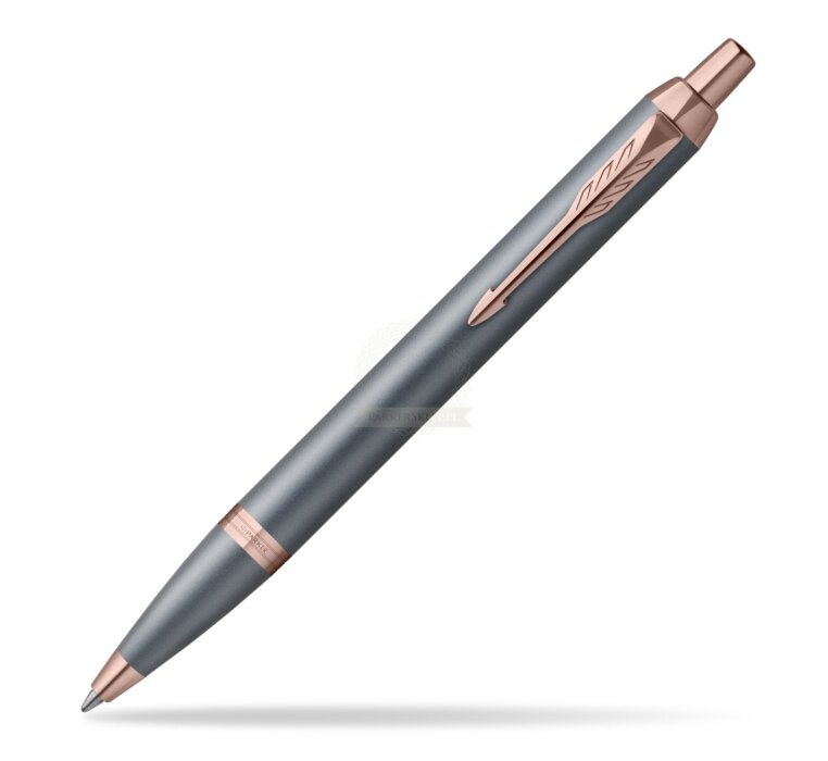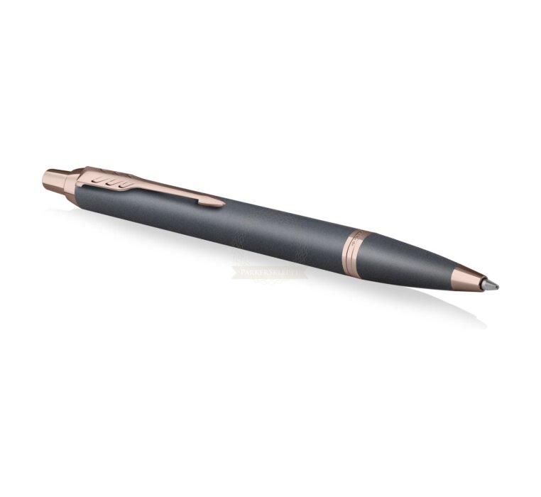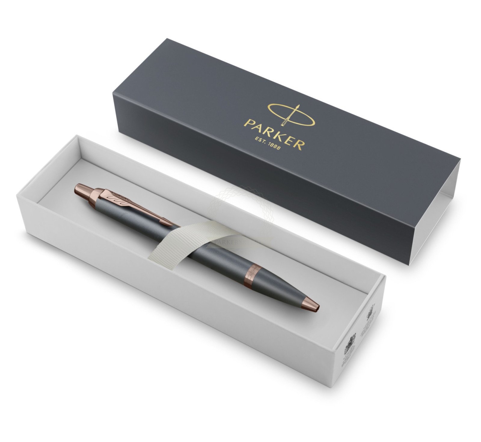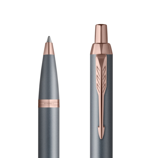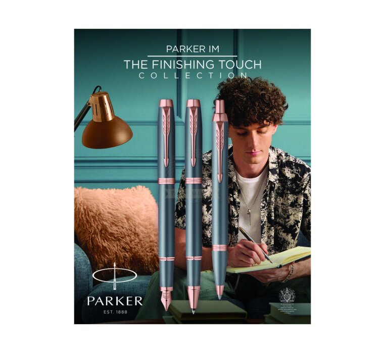 Wykorzystaj każdą chwilę inspiracji dzięki najnowszemu towarzyszowi Twojej podróży twórczej – kolekcji Parker IM Kropka nad i. Pióro premium zaprojektowane z myślą o osobach, które postrzegają pisanie jako najwyższą formę wyrazu. Dzięki niemu codzienne pisanie staje się wyjątkowym doświadczeniem. Idealnie sprawdza się do prowadzenia dziennika oraz zapisywania refleksji lub pomysłów. Każde jest dostępne w trzech nowoczesnych wykończeniach łączących delikatne satynowe odcienie z ciepłymi metalicznymi elementami, które zainspirują Twój wewnętrzny świat. Kolekcja oferuje możliwość personalizacji dzięki trzem opcjom pisma, z których każda zapewnia komfort, kontrolę i trwałość podczas długich, absorbujących sesji pisania. Są one dostarczane w eleganckim opakowaniu prezentowym – to inspirujący pomysł na prezent dla bliskiej osoby lub samego siebie. Głębokie szaroniebieskie wykończenie zostało zaakcentowane detalami w odcieniu różowego złota.