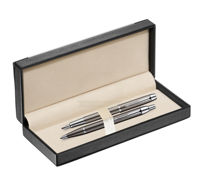 Zestaw prezentowy Parker pióro + długopis IM Gun Metal CT w czarnym pudełku zamszowym