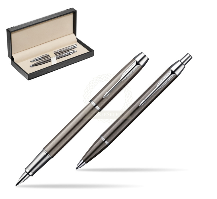 Zestaw prezentowy Parker pióro + długopis IM Gun Metal CT w pudełku classic brown