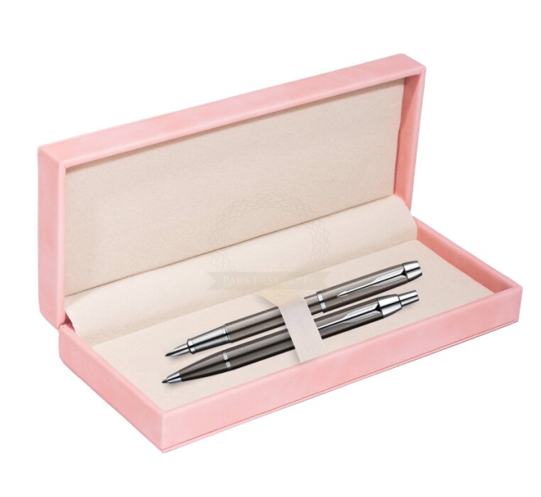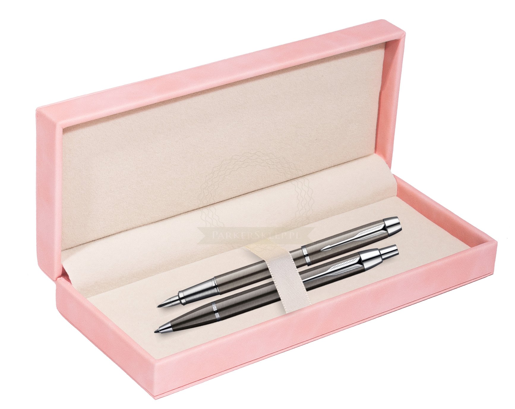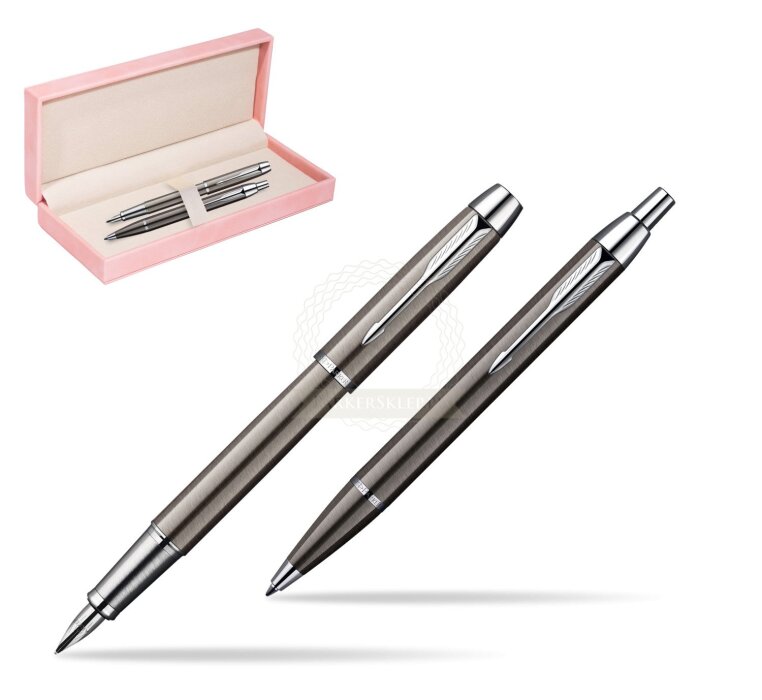 Zestaw prezentowy Parker pióro + długopis IM Gun Metal CT w różowym pudełku zamszowym