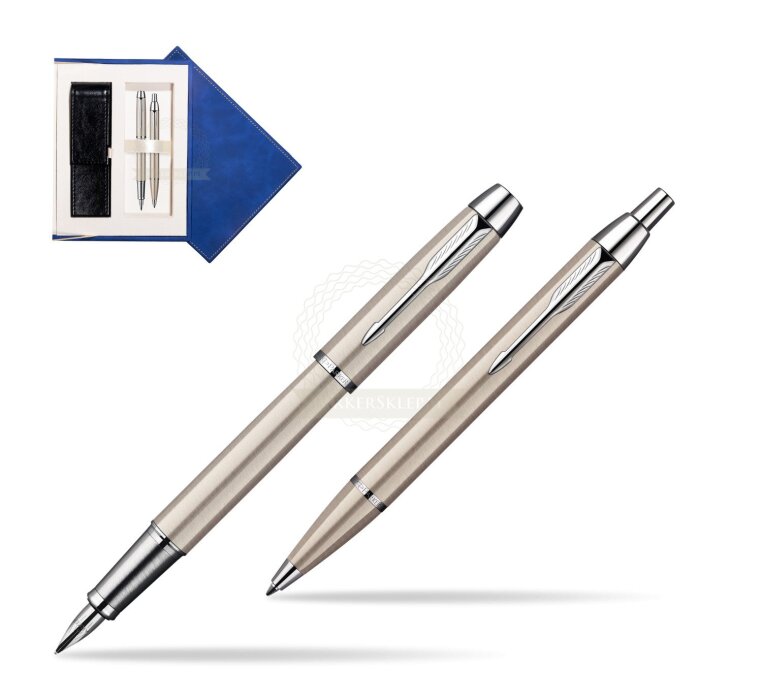 Zestaw prezentowy Parker pióro + długopis IM Brushed Metal CT w granatowym pudełku zamszowym (S0856220_S0856470_265BLUE)