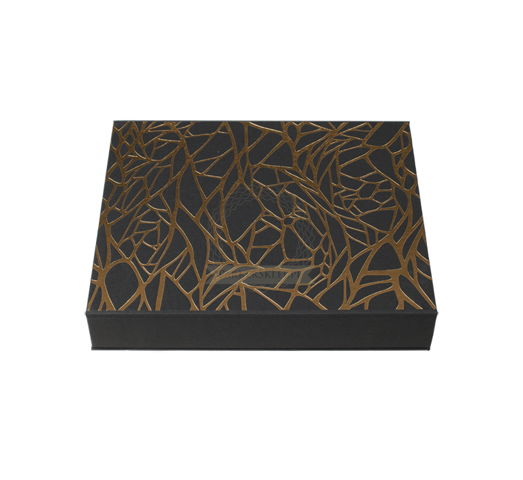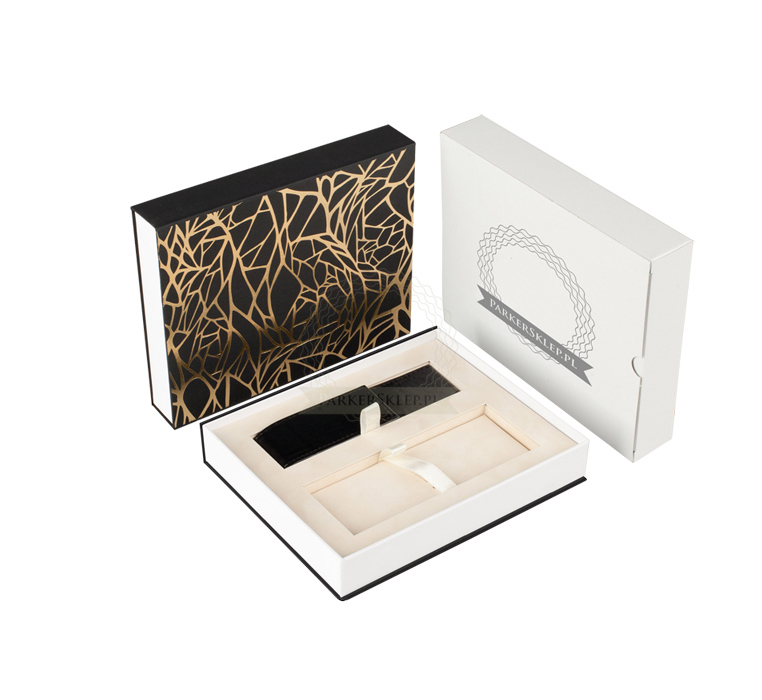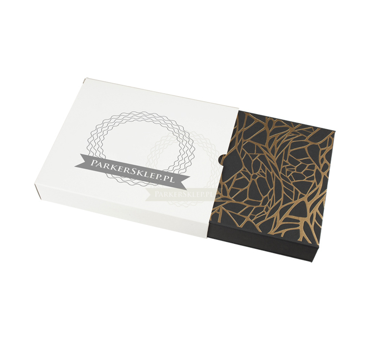Proponujemy Państwu eleganckie pudełko prezentowe "hand made" w kolorze złotej zieleni, przeznaczone na dwa produkty Parker. Powierzchnia pudełka powleczono specjalnym płótnem. Tłoczone wzorkiem na powierzchni. Pudełko zawiera stylowe etui wykonane z czarnej ekoskóry. Wyściełane atłasem, posiada eleganckie, prezentowe tasiemki. Zamykane na magnes.
