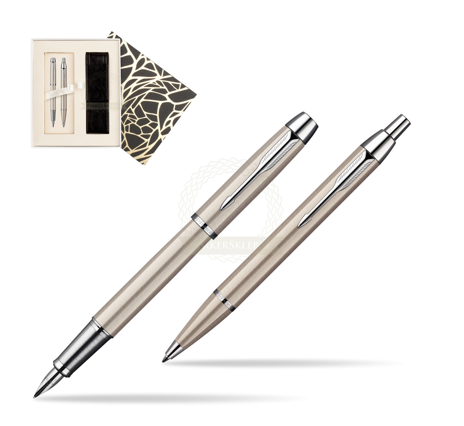 Zestaw pióro wieczne oraz długopis Parker IM to połączenie prostej elegancji i użytkowej funkcjonalności. Są synonimem miejskiego szyku. Znakomity zestaw Parker na prezent w kolorze szampańskiej stali. Bardzo atrakcyjny wygląd, markowe produkty to zestawienie na idealny prezent dla każdego.