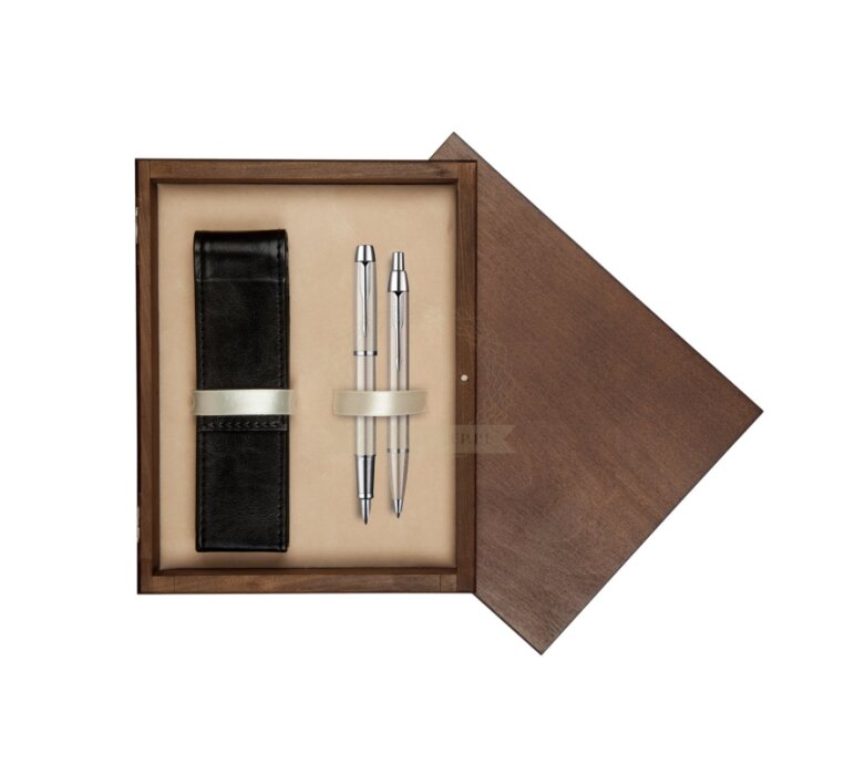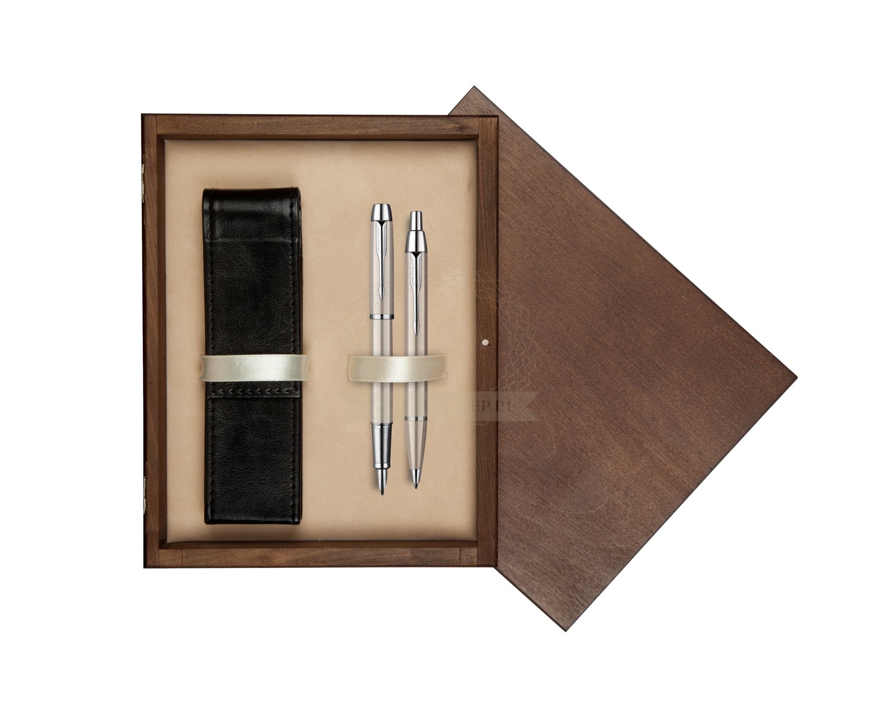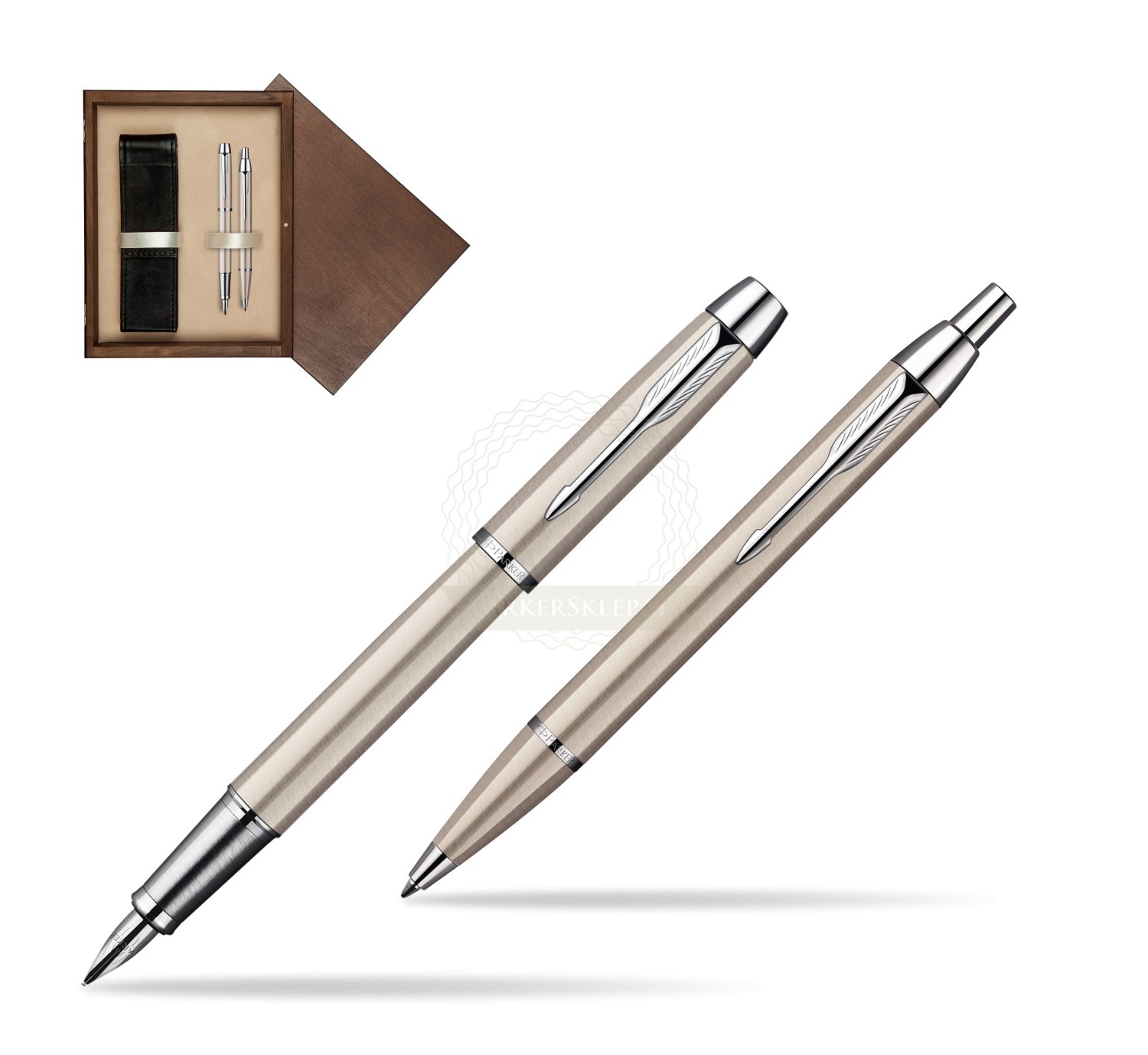 Zestaw prezentowy Parker pióro + długopis IM Brushed Metal CT w pudełku drewnianym Wenge Double Ecru (S0856220_S0856470_W2E)