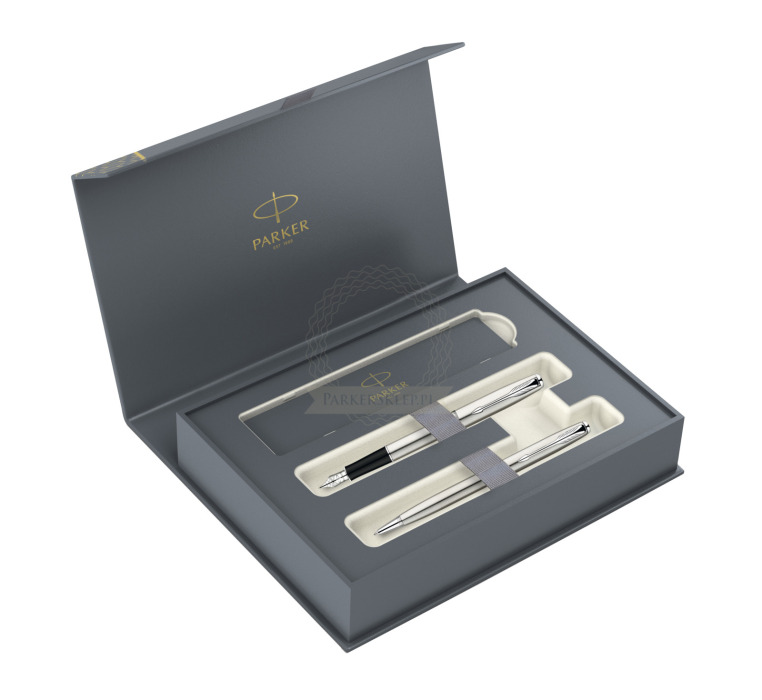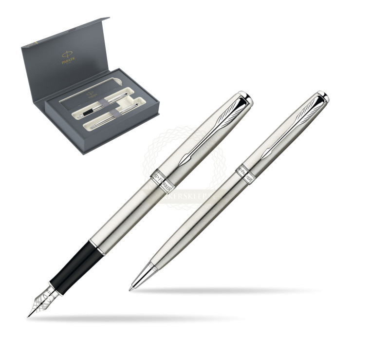 Zestaw prezentowy Parker Pióro + Długopis Sonnet Original Stalowy CT w czarnym pudełku zamszowym