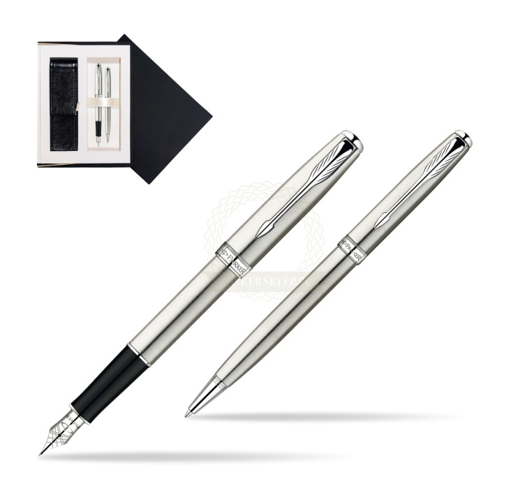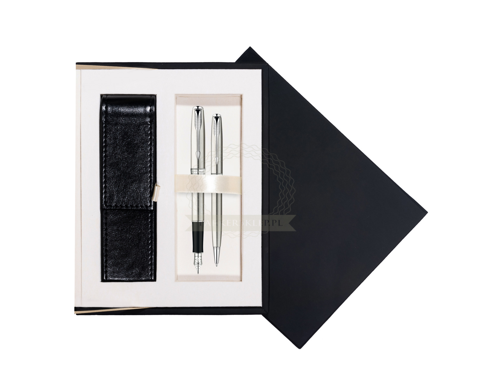 Zestaw prezentowy Parker Pióro + Długopis Sonnet Original Stalowy CT w czarnym pudełku zamszowym
