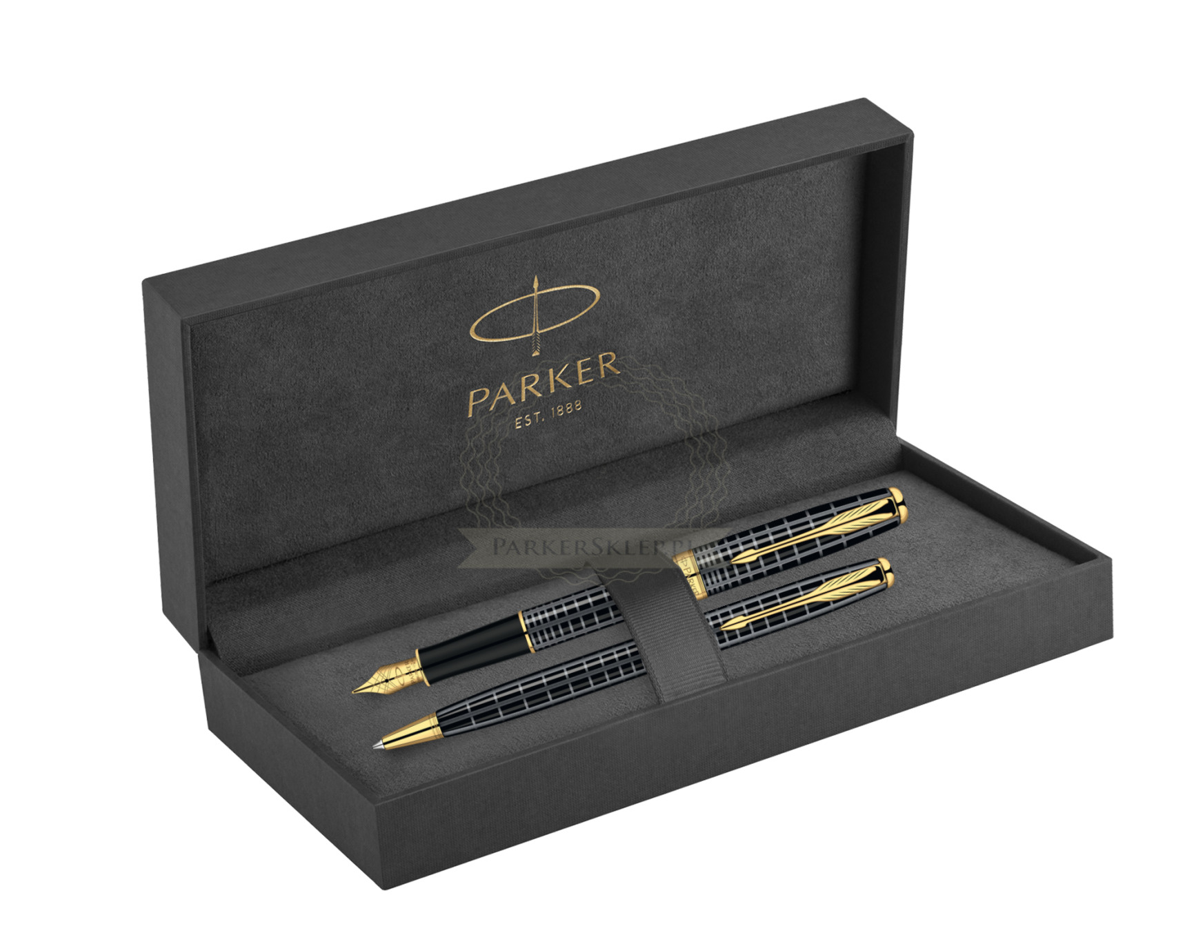 Zestaw prezentowy Parker Pióro + Długopis Sonnet Ciemno Szara Laka GT w oryginalnym pudełku Parker Prestige (S0912440_S0912470_2102172)